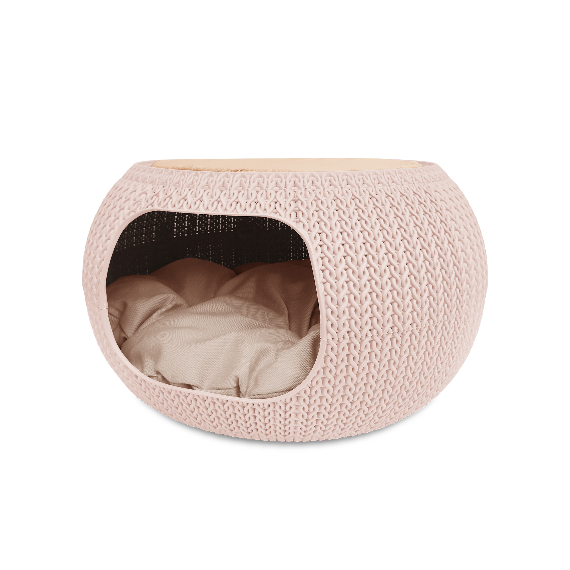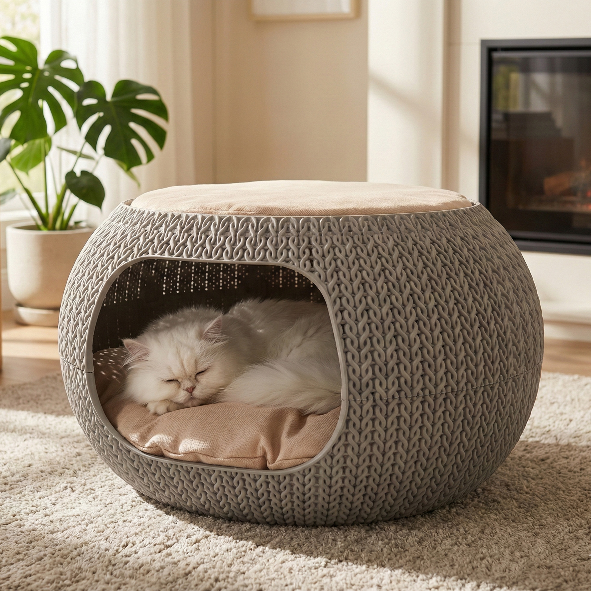 Una cama con diseño único que combina comodidad, estética y funcionalidad para tu mascota. Su textura tipo tejido aporta un toque cálido y decorativo al hogar, mientras que su estructura resistente y ventilada garantiza bienestar y seguridad.